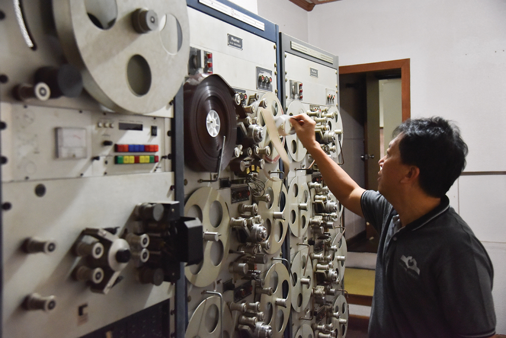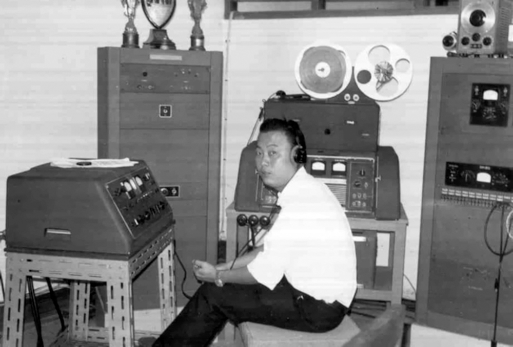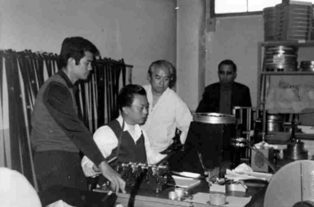 ภาพ: ปง อัศวินิกุล ขณะถ่ายเสียงลงฟิล์มระบบออปติคัล ที่โรงถ่ายหนุมานภาพยนตร์