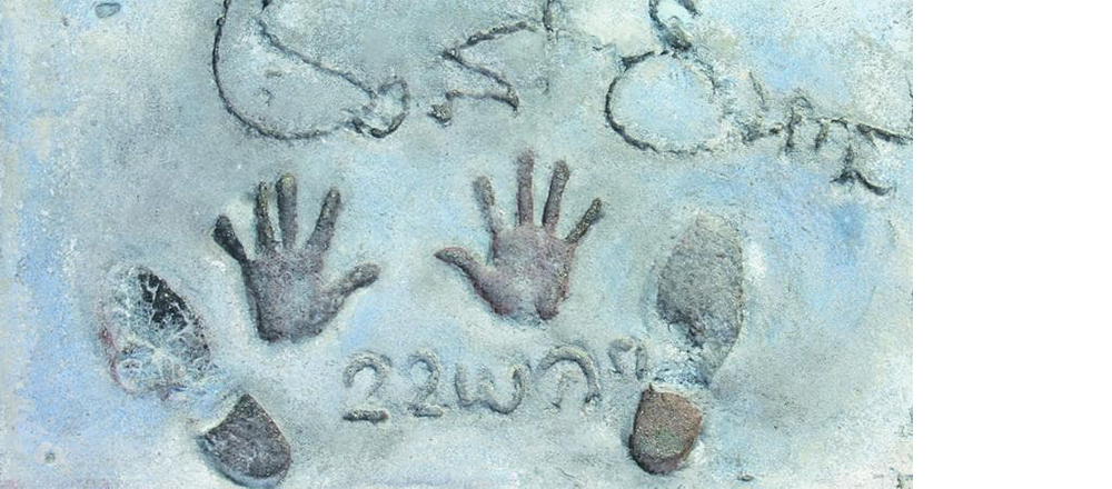 ภาพ: รอยพิมพ์มือพิมพ์เท้าของ ชาลี อินทรวิจิตร ณ ลานดารา หอภาพยนตร์ ที่ศาลายา