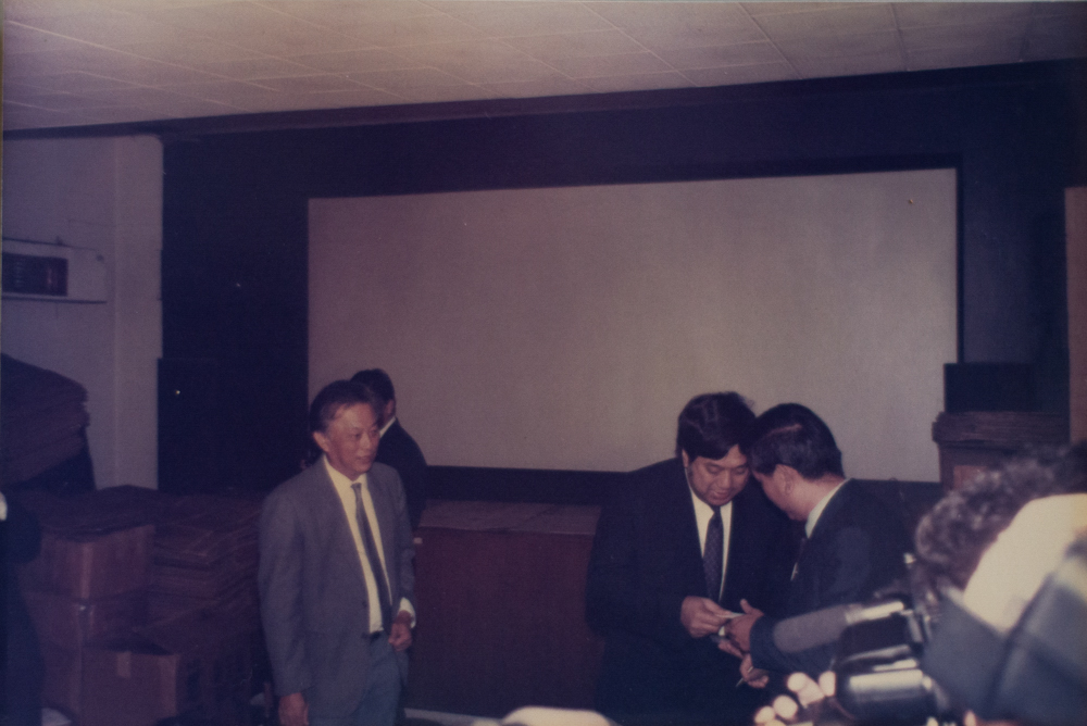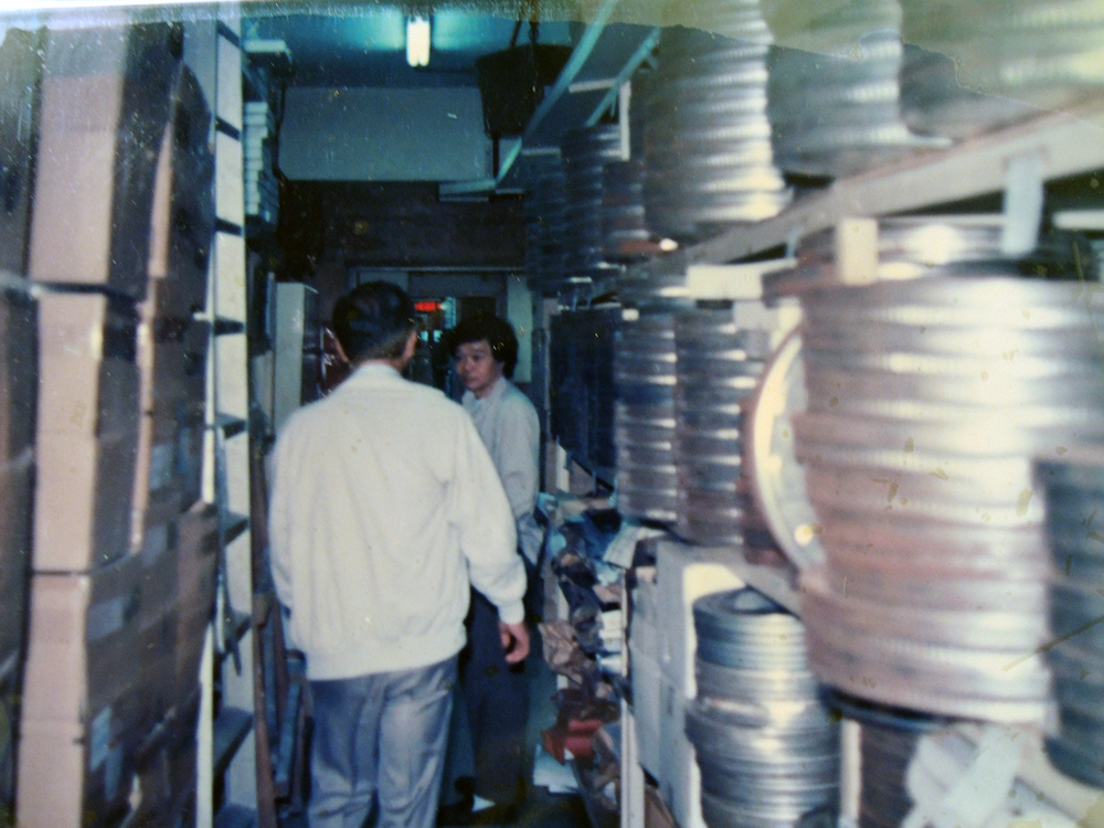 ภาพ: ปง อัศวินิกุล (หันหลัง) ในห้องเก็บฟิล์มของแล็บในฮ่องกง เมื่อครั้งช่วยภารกิจโครงการ หนังไทยกลับบ้าน