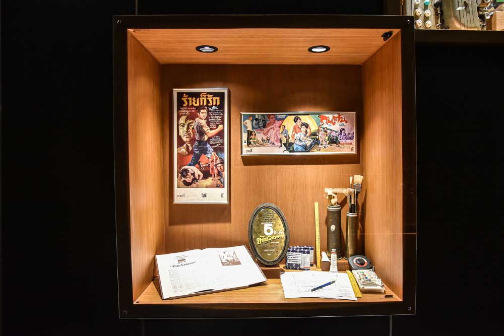 การสร้างภาพยนตร์ส่วนใหญ่จำเป็นต้องใช้อุปกรณ์ประกอบฉากที่ช่วยสร้างบรรยากาศและส่งเสริมบทบาทของตัวละคร อุปกรณ์ประกอบฉากที่นำมาจัดแสดงไม่ว่าจะเป็นข้าวของเครื่องใช้ ศาลเจ้า บาตรพระ อาวุธ โครงกระดูกจำลอง ตลอดจนของจิปาถะ เสมือนเป็นภาพแทนที่บอกเล่าเรื่องราวของภาพยนตร์เรื่องนั้น ๆ อย่างขนุนจำลองลูกใหญ่จากภาพยนตร์ หลวงพี่กับผีขนุน (2552) หรือเครื่องเคราที่มีเอกลักษณ์เรื่อง คู่กรรม (2556) ที่รวมเอาอัตลักษณ์ของยุคสงครามโลกครั้งที่ 2 ด้วยภาพแทนของกองทัพจักรวรรดิญี่ปุ่นมาให้ชมอย่างครบครัน