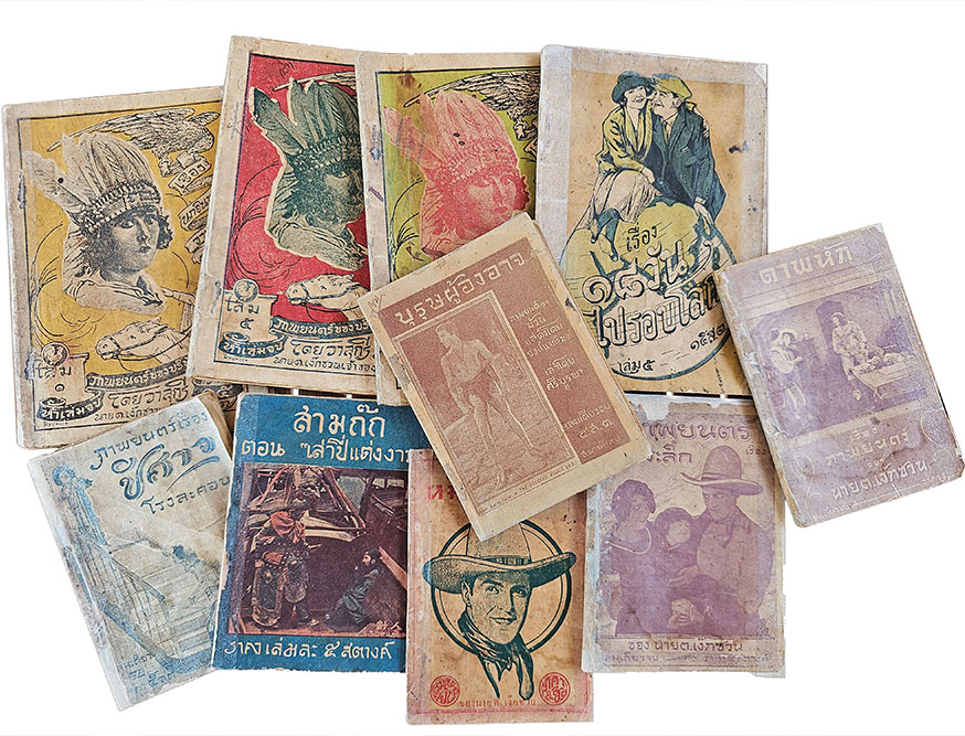 ในขณะที่การเขียนนวนิยายของไทยเริ่มขึ้นพร้อมกับภาพยนตร์ที่เพิ่งเกิดขึ้นในโลก ภาพยนตร์ได้เติบโตพัฒนาอย่างรวดเร็วจากการถ่ายภาพเคลื่อนไหวบันทึกเหตุการณ์สิ่งละอันพันละน้อย มาเป็นสื่อภาษาอย่างใหม่ที่สามารถเล่าเรื่องได้อย่างเดียวกับละครและนวนิยาย มีการนำบทละครและนวนิยายหรือแต่งเรื่องขึ้นใหม่มาถ่ายทำเป็นภาษาภาพยนตร์ และได้รับความนิยมไปทั่วโลกในระหว่างปี 2450-2470 ซึ่งเป็นยุคที่ภาพยนตร์ยังไม่มีการบันทึกเสียง คำบรรยายและคำเจรจาของตัวละครจะใช้ข้อความตัวอักษรแทรกให้ผู้ชมอ่าน และด้วยเหตุที่ภาพยนตร์ส่วนใหญ่ที่เข้ามาฉายในสยามเป็นภาพยนตร์ต่างประเทศ ใช้ข้อความภาษาต่างชาติ ทำให้ผู้ชมภาพยนตร์ในสยามส่วนใหญ่ซึ่งอ่านภาษาต่างชาติไม่ได้ ไม่สามารถเข้าถึงอรรถรสได้เต็มที่ จึงมีผู้คิดแปลและเรียบเรียงเรื่องจากภาพยนตร์ต่างประเทศที่เข้ามาฉายเป็นภาษาไทย ออกจำหน่ายเป็นหนังสือเล่มเล็ก ๆ ใช้เป็นคู่มือในการดูภาพยนตร์