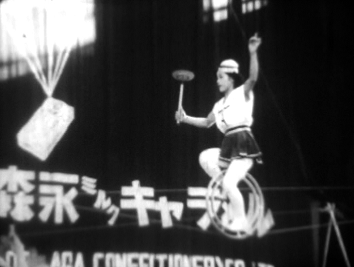 ภาพแรกของภาพยนตร์บันทึกภาพไปที่สิ่งปลูกสร้างคล้ายเต็นท์ ขนาดใหญ่ซึ่งติดป้ายมีข้อความว่า คณะละครสัตว์กิโนชิตา 団馬曲大下木 (เรียงอักษรตามปรากฏในภาพยนตร์) เหนือจากป้ายเป็นวัตถุทรงกลมลาย และสีธงชาติไทย บริเวณหน้าอาคารมีรถยนต์ รถสามล้อถีบ และผู้คนขวักไขว่ ต่อมาจึงเป็นภาพเริ่มการแสดงที่การเต้นเตะสลับขาเรียงแถวในสไตล์อเมริกันของนักแสดงหญิงจำนวน 10 ท่าน ต่อจากนั้นจึงเป็นการเต้น รวมหญิงชายหน้ายกพื้นที่มีนักดนตรีบรรเลงดนตรีอยู่ ถัดมาเป็นเด็กหญิงในชุดนักเรียนซึ่งน่าจะเป็นเด็กไทยเต้นโยกตัวไปตามจังหวะดนตรี ต่อมาเป็นการแสดงกายกรรมของนักแสดงชายโหนเชือก ซึ่งโล้ไปมาบนที่สูง, การแสดงขี่จักรยานผาดโผน, การแสดงโยนและรับมีด, การแสดงการทรงตัว บนเส้นลวด, การขี่จักรยานบนเส้นลวด จากนั้นเป็นการแสดงของแมวน้ำแสนรู้ที่ถูกฝึกมาให้แสดงการหมุนจานด้วยปลายไม้โยนและรับสิ่งของ, การแสดงการขี่จักรยานล้อเดียวเป็นกลุ่ม, การแสดงการใช้เท้ายกสิ่งของ และนักแสดงด้วยกันที่ทรงตัวอย่างน่าทึ่ง, การแสดงของลิงที่ขี่จักรยานและลากรถที่มีเด็กนักเรียนโดยสารอยู่อย่างคล่องแคล่ว, การแสดงการทรงตัวบนเก้าอี้, การแสดงการทรงตัวบนเส้นลวดโดยใช้ร่มประกอบการแสดง ซึ่งเป็นการแสดงอันเป็นเอกลักษณ์หนึ่งของคณะที่ดัดแปลงมาจากการแสดงสมัยเก่า, การแสดงกายกรรมหมู่ และจบการบันทึกที่การแสดงของช้าง ซึ่งถูกควบคุมโดยเหล่าผู้ควบคุมหญิงจำนวนหลายท่าน ตลอดการแสดงจะได้เห็นบรรยากาศของผู้ชมที่ชมการแสดงอย่างสนใจ รวมไปถึงลานการแสดง และโครงสร้างภายในของสิ่งปลูกสร้างที่จัดการแสดง ซึ่งต้องมีความสูงของเพดานเป็นพิเศษเพื่อให้เหมาะสมกับการแสดงหลายชุด นอกจากนั้นในฉากหลังของการแสดงยังปรากฏชื่อของ Morinaga Confectionery Co. .ltd ซึ่งเป็นบริษัทขายขนมและลูกอมซึ่งเข้ามาทำการค้าในไทยที่เป็นผู้ว่าจ้างและสนับสนุนการแสดงด้วย