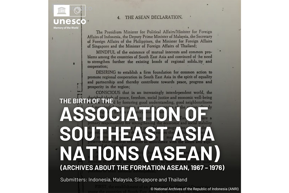 เอกสารการก่อตั้งอาเซียน เป็นชุดเอกสารจดหมายเหตุสำคัญทางประวัติศาสตร์ที่บันทึกเรื่องราวการรวมตัวของ 5 ประเทศ ได้แก่ มาเลเซีย อินโดนีเซีย ฟิลิปปินส์ สิงคโปร์ และไทย ซึ่งร่วมลงนามในปฏิญญาอาเซียนเมื่อปี 2510 ต่อมากลายเป็นสมาคมประชาชาติแห่งเอเชียตะวันออกเฉียงใต้ หรือที่เรารู้จักกันในนาม “อาเซียน”