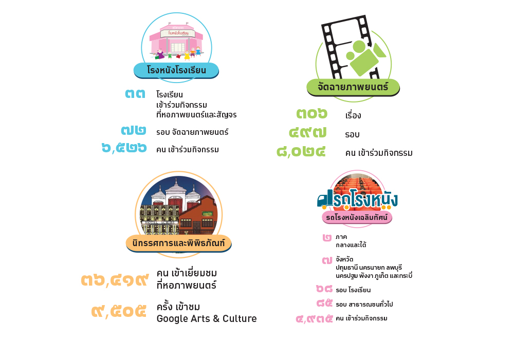 และอีกภาพที่ทุกคนจดจำ เมื่อหอภาพยนตร์ร่วมกับสมาคมผู้กำกับภาพยนตร์ไทย จัดกิจกรรม “กรุงเทพกลางแปลง” โดยมีเป้าหมายเพื่อส่งเสริมให้ประชาชนสามารถเข้าถึงศิลปะและเรียนรู้ประวัติศาสตร์ของเมืองผ่านการชมภาพยนตร์ในพื้นที่สาธารณะที่มีเนื้อหาเกี่ยวข้องกับสถานที่นั้น ๆ และสร้างความบันเทิงให้กับประชาชน รวมถึงเป็นการกระตุ้นเศรษฐกิจการค้าในพื้นที่รอบกรุงเทพมหานคร ซึ่งงานได้รับเสียงตอบรับและปลุกกระแสหนังกลางแปลงให้ครึกครื้นอีกครั้ง