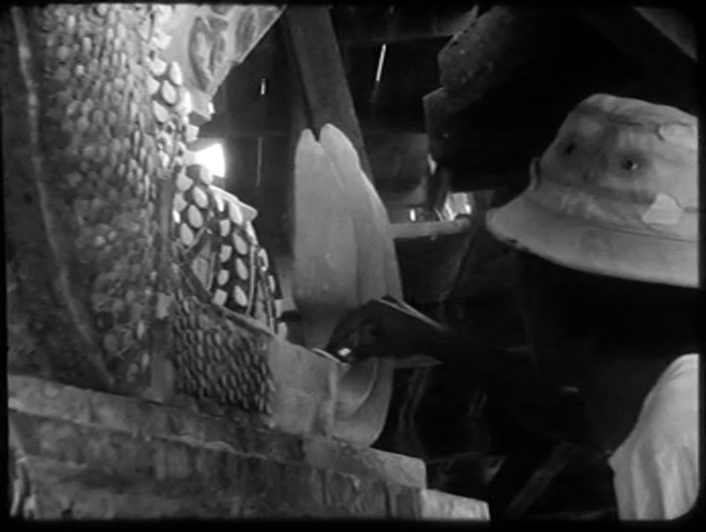 ภาพที่ปรากฏในภาพยนตร์เริ่มต้นจากภาพมุมสูงจากนั่งร้านรอบพระปรางค์มองข้ามแม่น้ำไปเห็นตลาดท่าเตียนและวัดพระเชตุพนวิมลมังคลาราม (วัดโพธิ์) จากนั้นจึงเป็นภาพของฝั่งแม่น้ำเดียวกัน ประกอบด้วย อาคารเรียนโรงเรียนทวีธาภิเศก ซุ้มประตูยอดทรงมงกุฎทางเข้าไปสู่พระอุโบสถ ยักษ์ 2 ตนซึ่งเป็นที่รู้จักกันดี เขามอ (ภูเขาและสวนจำลองตามความเชื่อของพราหมณ์ฮินดู) จากนั้นจึงเป็นภาพกว้างของพระปรางค์ที่ถูกล้อมนั่งร้านขึ้นไปจนเกือบถึงยอดของปรางค์ประธาน ภาพฐานพระปรางค์ย่อมุมประดับยักษ์แบก (ใส่เกราะ) ของปรางค์หลัก ภาพมุมใกล้ของเทวดาแบก (ไม่ใส่เกราะ) ของปรางค์บริวาร ต่อมาเป็นภาพของช่างที่กำลังเตรียมการฉีดปูนเกราท์ (ปูนสำเร็จรูปผสมพิเศษซึ่งสามารถแทรกตัวเข้าไปในรอยแยกได้ดีและให้กำลังอัดสูง) เข้าไปในช่องที่เจาะไว้เพื่อเสริมความแข็งแรงของฐาน ภาพของช่างกำลังวาดแบบลงบนชามกระเบื้อง จากนั้นจึงตัดด้วยเครื่องเจียรที่ประยุกต์การใช้งานโดยยึดไว้กับฐาน ก่อนนำชิ้นกระเบื้องที่ตัดได้ไปติดแทนชิ้นเดิมที่ชฎาของพระนารายณ์ทรงสุบรรณที่ประดับอยู่บริเวณชั้นรัดประคดของพระปรางค์ ต่อมาเป็นภาพของช่างขัดทำความสะอาดองค์พระปรางค์ ส่วนต่าง ๆ ขององค์พระปรางค์ซึ่งหักพังสูญหาย รวมถึงหางหงส์ และงวงของช้างจากรูปพระอินทร์ทรงช้างเอราวัณ ช่างใช้วิธีปั้นทดแทนและติดกระเบื้องประดับให้ใกล้เคียงของเดิม ช่วงท้ายของภาพยนตร์ได้ถ่ายทำให้เห็นการขึ้นลงจากพื้นดินสู่โครงไม้นั่งร้านรอบพระปรางค์ที่สูงหลายสิบเมตรโดยใช้รอกดึงขึ้นไปทั้งคนและวัสดุอุปกรณ์ในการทำงาน