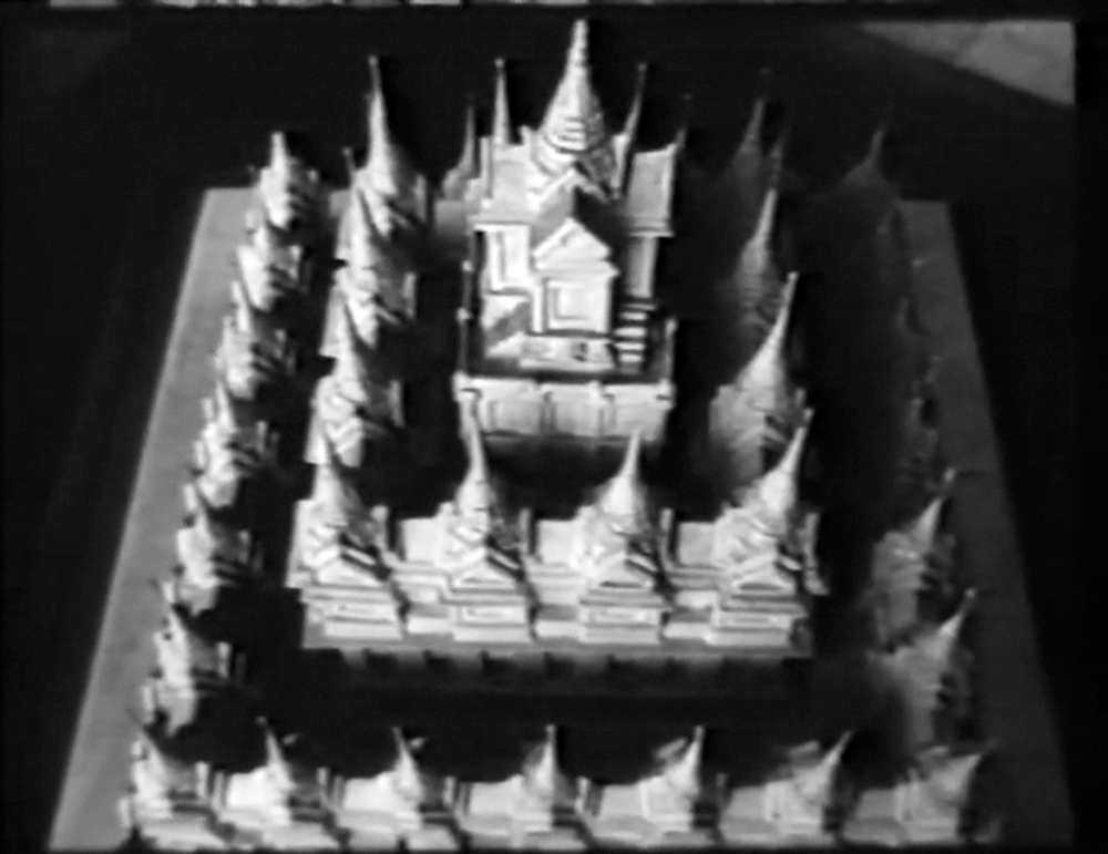 ภาพแรกของภาพยนตร์เป็นภาพของโลหะปราสาทปรากฏพร้อมชื่อเรื่อง จากนั้นจึงเป็นวัดราชนัดดาที่มีโครงไม้ก่อสร้างจากมุมมองภายนอก บริเวณกำแพงวัดมีป้ายรับบริจาควัสดุก่อสร้างจากประชาชน ต่อจากนั้นจึงเป็นบริเวณของพระอุโบสถของวัดราชนัดดา ท่านเจ้าคุณพระราชปัญญาโสภณ (สุข ปุญญรํสี) เจ้าอาวาสวัดราชนัดดา เดินนำขึ้นบันไดส่วนก่อสร้างเข้าสู่บริเวณของโลหะปราสาทที่เป็นโครงสร้างก่ออิฐรกร้างทรุดโทรมเนื่องจากก่อสร้างไม่เสร็จ ซึ่งกำลังอยู่ในระหว่างการบูรณะและก่อสร้างเพิ่มเติม โดยช่องทางเดินข้างในที่มีถึง 6 ชั้นนี้สามารถตรงไปยังใจกลางของโลหะปราสาทซึ่งเป็นทรงกลม โดยมีท่อนซุงสำหรับค้ำยันตั้งแต่พื้นล่างไปจนถึงยอดของโลหะปราสาท ผู้ชมจะได้เห็นช่างกำลังก่อสร้างส่วนต่าง ๆ ตั้งแต่งานโครงสร้าง จนถึงงานตกแต่งภายใน ลวดลาย ตลอดจนงานปูนปั้นลายหัวเสาภายในโลหะปราสาทได้ถูกจำลองขึ้นใหม่ด้วยความระมัดระวังและพยายามให้เหมือนของเดิมที่สุด ในส่วนนี้เนื้อหาจะจบลงที่รูปจำลองของโลหะปราสาทเมื่อบูรณะเสร็จสิ้นที่จำลองขึ้นโดยกรมศิลปากร โดยแสดงลักษณะสำคัญของการบูรณะครั้งนี้คือ สีของยอดปราสาทที่มีรวมทั้งสิ้น 37 ยอดนั้นเป็นสีขาว โดยโลหะปราสาทนี้ พระบาทสมเด็จพระนั่งเกล้าเจ้าอยู่หัวโปรดเกล้าโปรดกระหม่อมให้สร้างขึ้นเพื่อเป็นพระเกียรติแก่พระเจ้าหลานเธอพระองค์เจ้าหญิงโสมนัสวัฒนาวดี เช่นเดียวกับการก่อสร้างวัดราชนัดดา