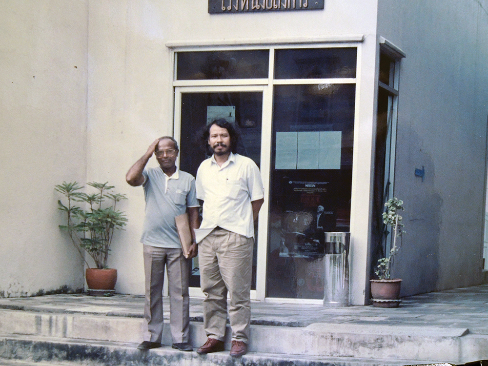 ภาพ: พ่ออมล กับ โดม สุขวงศ์ ที่หน้าโรงหนังอลังการ หอภาพยนตร์ ถ.เจ้าฟ้า ปี 2533