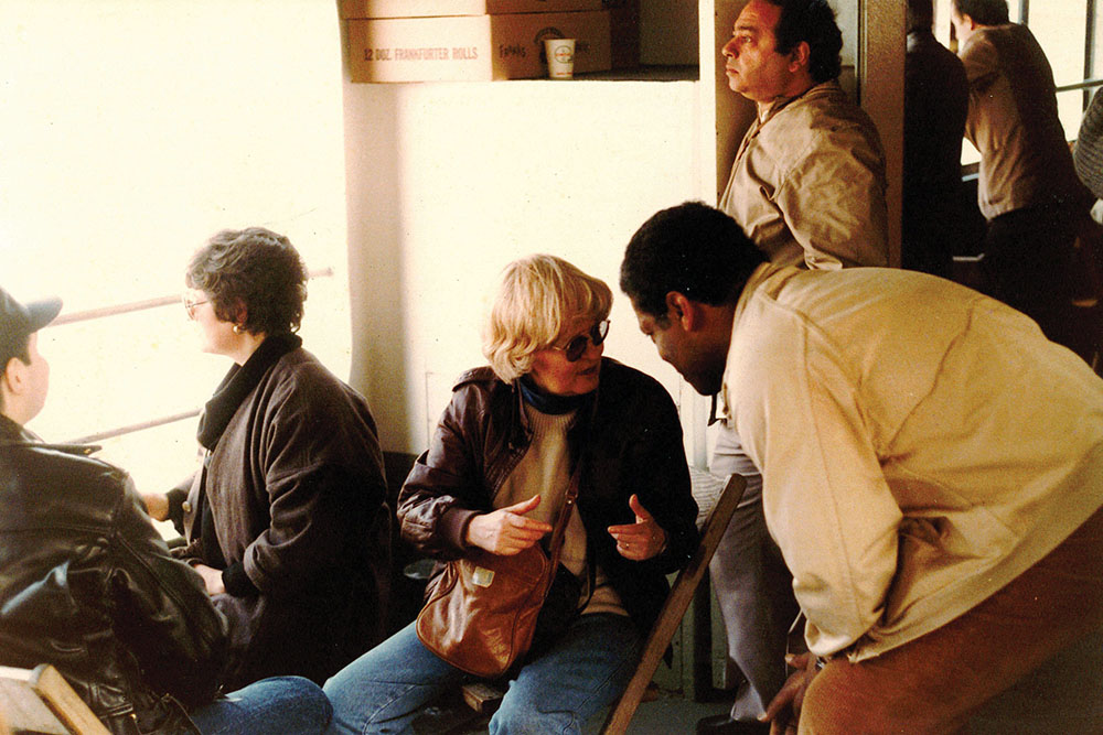 ภาพ: คอสเม อัลเวส เนตโต (ยืนริมกำแพง) ในงานประชุมใหญ่ของ FIAF ที่นิวยอร์ก ปี 2530 ถ่ายโดย โดม สุขวงศ์