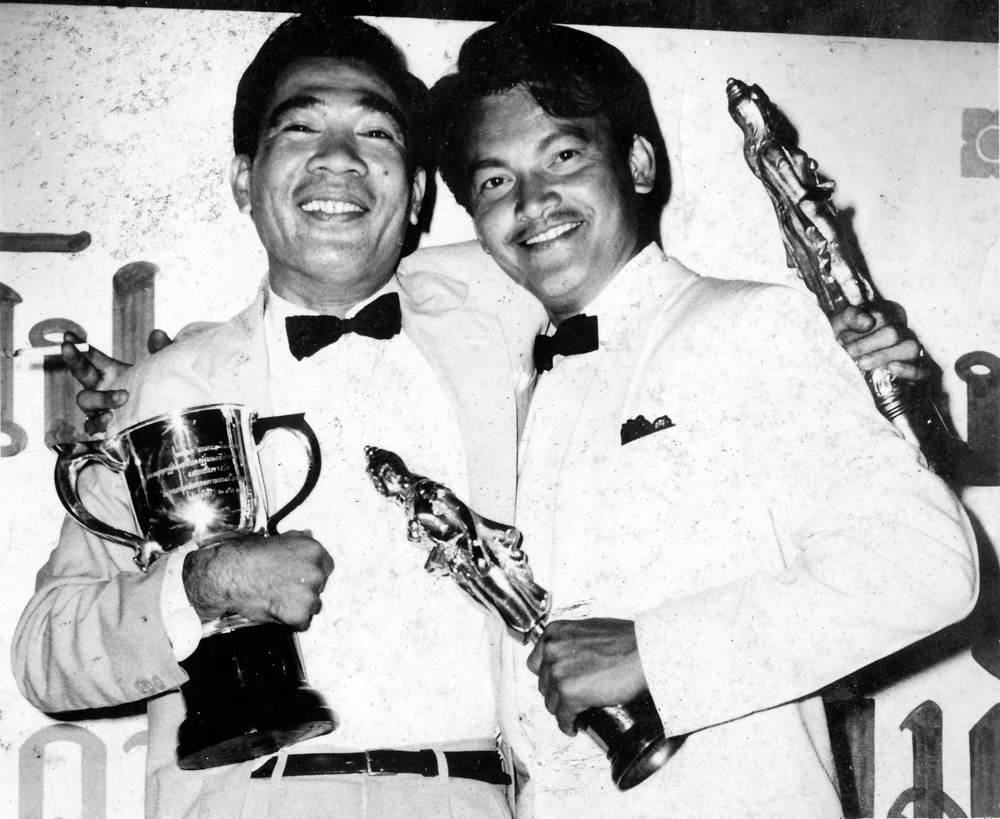 ภาพ: คุณาวุฒิกับสามรางวัลตุ๊กตาทอง จาก มือโจร (2504) ถ่ายร่วมกับนักแสดงนำ ประจวบ ฤกษ์ยามดี