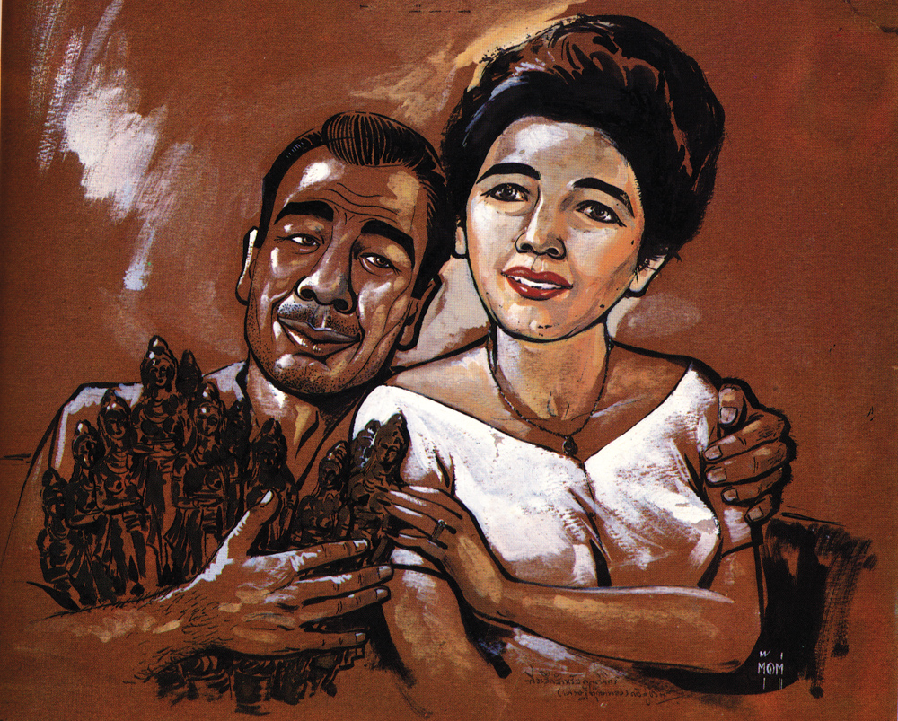 ภาพวาด คุณาวุฒิ กอดตุ๊กตาทอง และภรรยาทองปอนด์ โดย พนม สุวรรณบุณย์