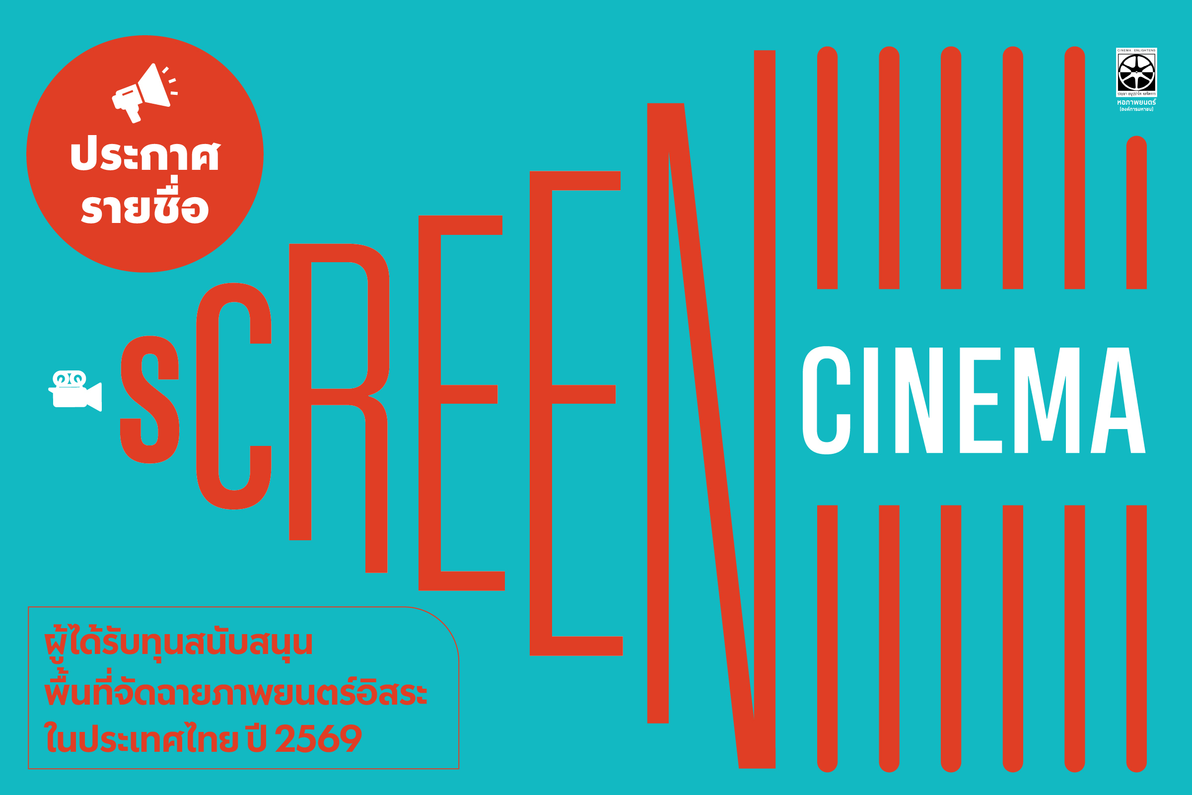 ข้อเสนอโครงการที่ผ่านการคัดเลือกโครงการส่งเสริมสนับสนุนวัฒนธรรมสร้างสรรค์: กิจกรรมสนับสนุนพื้นที่จัดฉายภาพยนตร์อิสระในประเทศไทย ปีงบประมาณ 2569 มีรายช...