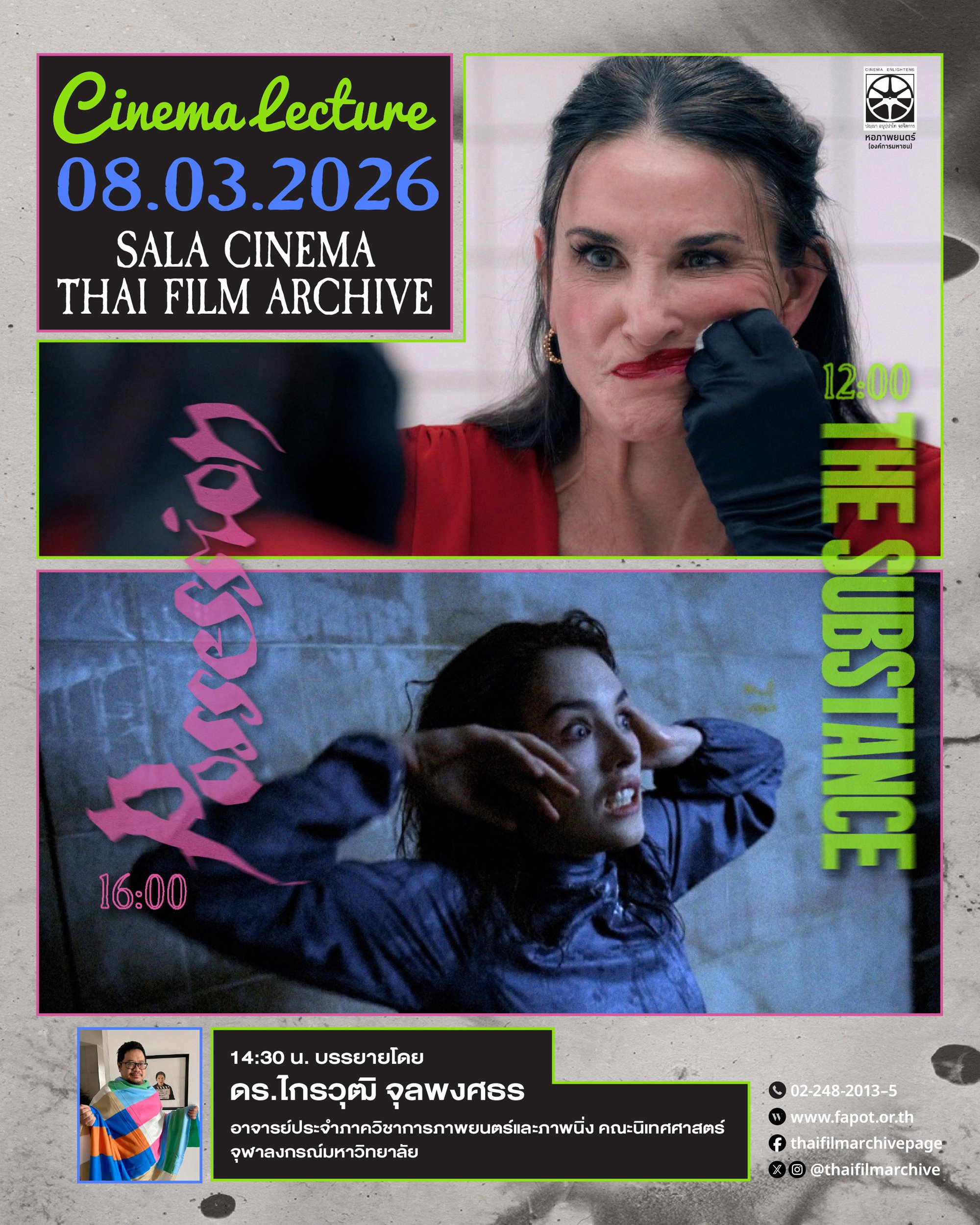 จากนั้นจะพาดำดิ่งสู่ความบิดเบี้ยวของมาตรฐานความงามและการต่อสู้กับกาลเวลา Death Becomes Her ของ โรเบิร์ต เซเม็กคิส นำเสนอความสยองปนตลกร้ายของสังขารที่ไม่ยอมตายเพื่อแลกมาซึ่งความเยาว์วัยอันจอมปลอม ส่งไม้ต่อมายัง The Substance ของ โคราลี ฟาร์ฌา ที่กรีดลึกถึงความเจ็บปวดของการโหยหาร่างที่ดีกว่า จนนำไปสู่การแตกหน่อของตัวตนและการทำลายล้างร่างกายตนเอง