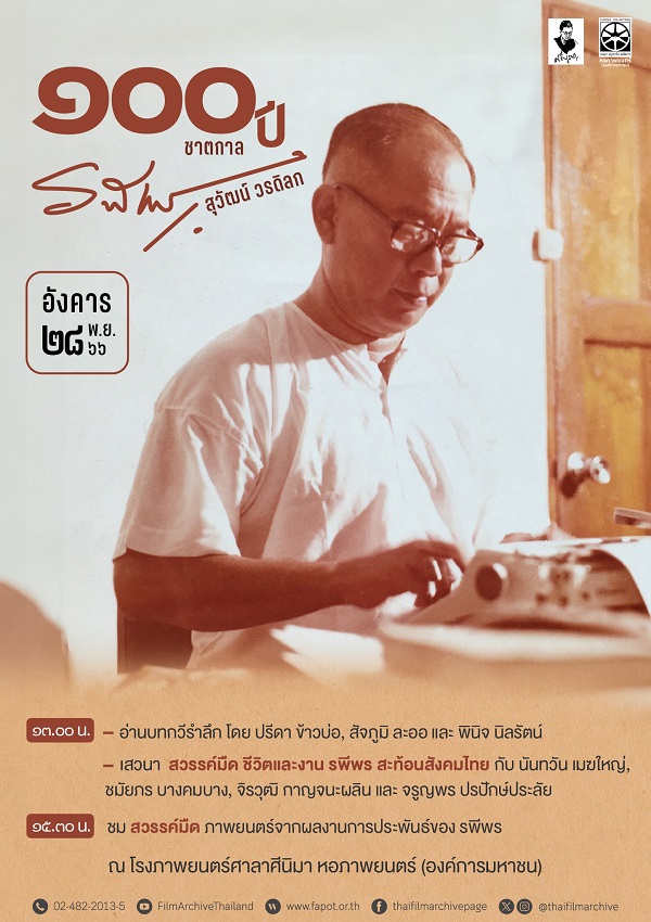 สุวัฒน์ วรดิลก (รพีพร) : หนึ่งศตวรรษ สามศิลปินจากเวทีละครถึงโลกหนังไทย