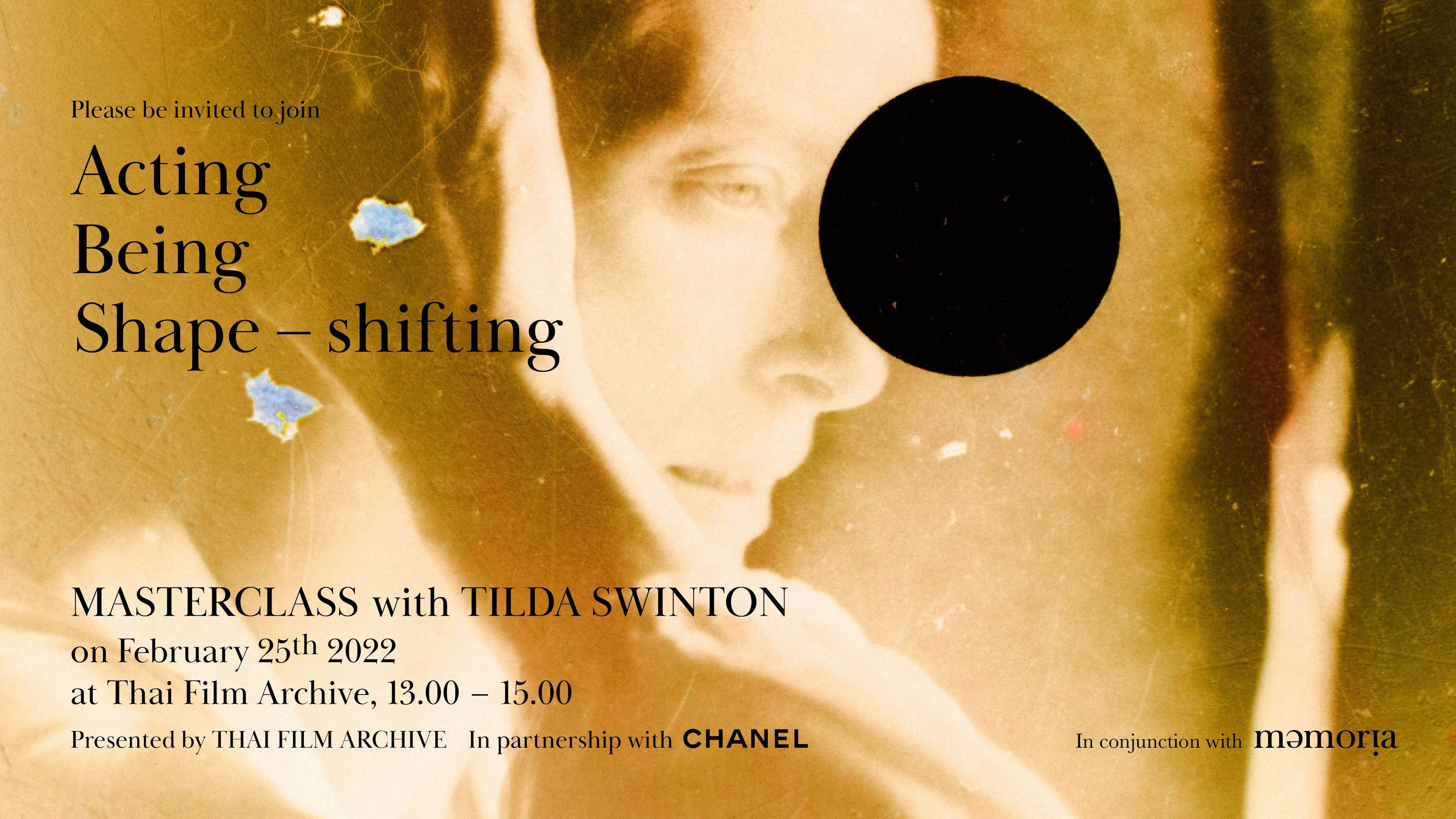 ร่วมเรียนรู้กับนักแสดงชั้นครู ทิลดา สวินตัน ที่จะมาบอกเล่าถึงตัวตน การเป็นอยู่ และประสบการณ์ทางการแสดงที่บ่มเพาะมากว่า 30 ปีเป็นครั้งแรกในประเทศไทยในหัวข้อ Masterclass with Tilda Swinton: Acting, being, shape-shifting งานนี้จะดำเนินรายการเป็นภาษาอังกฤษ แต่มีอุปกรณ์การฟังสำหรับแปลภาษาไทยบริการที่หน้างาน