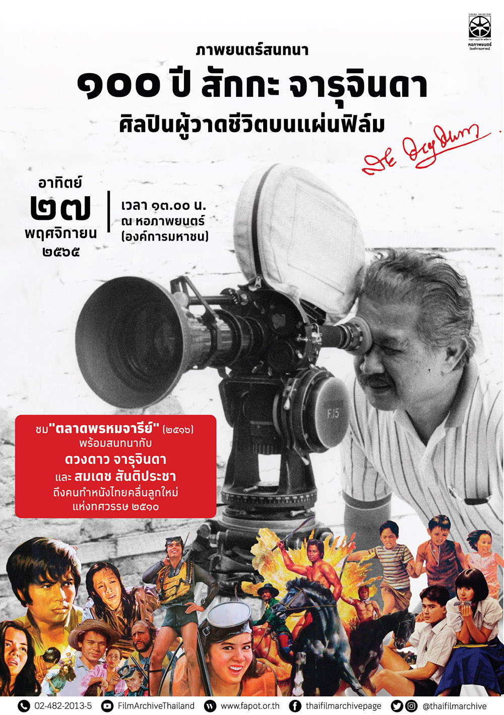 เนื่องในวาระครบ 100 ปีชาตกาลของ สักกะ จารุจินดา หอภาพยนตร์ได้นำสำเนาฟิล์ม 16 มม. ของผลงานที่ได้รับการขึ้นทะเบียนเป็นมรดกภาพยนตร์ของชาติเรื่อง ตลาดพรหมจารีย์ (2516) อันเป็นฉบับเดียวที่หลงเหลืออยู่มาสแกนภาพใหม่ เพื่อจัดฉายรำลึกให้เห็นถึงความสำคัญและสปิริตของ สักกะ จารุจินดา พร้อมจัดกิจกรรมภาพยนตร์สนทนา “100 ปี สักกะ จารุจินดา ศิลปินผู้วาดชีวิตบนแผ่นฟิล์ม” พูดคุยกับ ดวงดาว จารุจินดา และ สมเดช สันติประชา