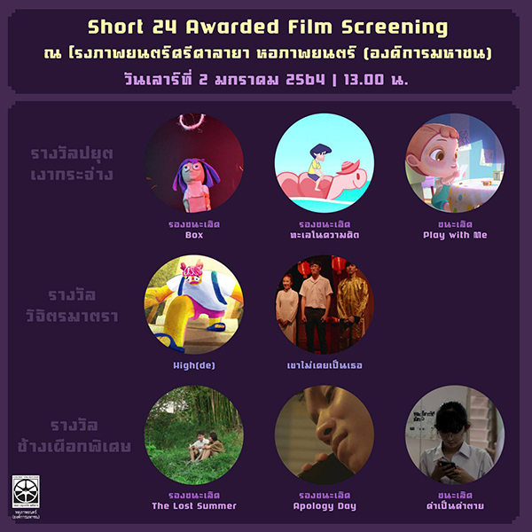 โปรแกรมคัดสรร ผลงานที่ได้รับรางวัลในเทศกาลภาพยนตร์สั้น ครั้งที่ 24