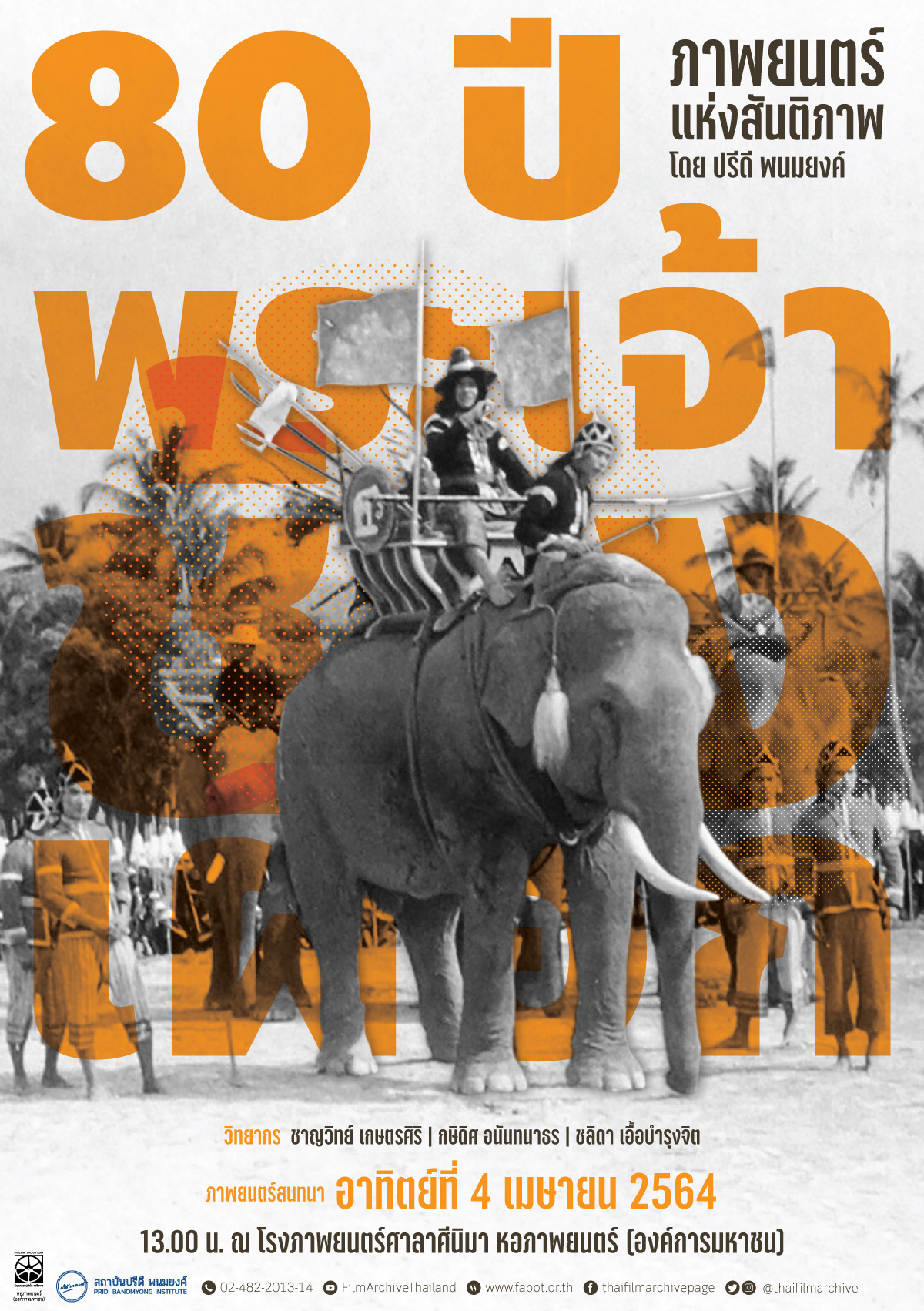 ร่วมชมภาพยนตร์แห่งสันติภาพโดย ปรีดี พนมยงค์ เนื่องในวาระครบรอบ 80 ปี วันแรกฉาย พร้อมสนทนาหลังชมภาพยนตร์กับ ศาสตราจารย์พิเศษ ดร.ชาญวิทย์ เกษตรศิริ นักวิชาการด้านประวัติศาสตร์ และที่ปรึกษามูลนิธิปรีดี พนมยงค์, กษิดิศ อนันทนาธร กรรมการบริหารสถาบันปรีดี พนมยงค์ และ ชลิดา เอื้อบำรุงจิต ผู้อำนวยการหอภาพยนตร์