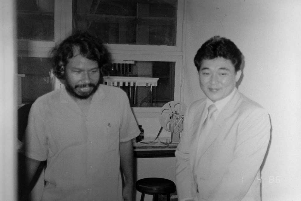 ภาพ: โดม สุขวงศ์ และ ประวิทย์ มาลีนนท์ ในวันรับมอบภาพยนตร์ 1 เมษายน 2529
