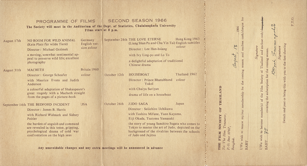 จนเรื่องสุดท้ายของโปรแกรม ผมจึงได้รับแจกโปรแกรมต่อไปที่จะเริ่มในเดือนสิงหาคม และได้ทราบว่าการฉายหนังครั้งนี้ ทำในนามของสมาคมฟิล์มแห่งประเทศไทย