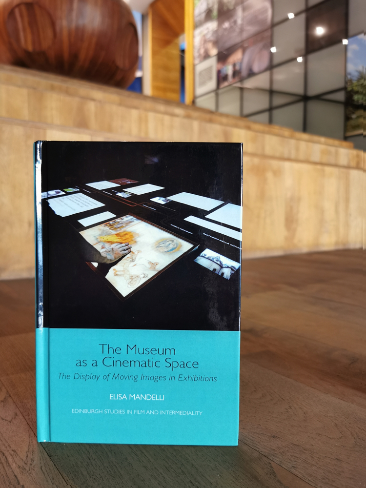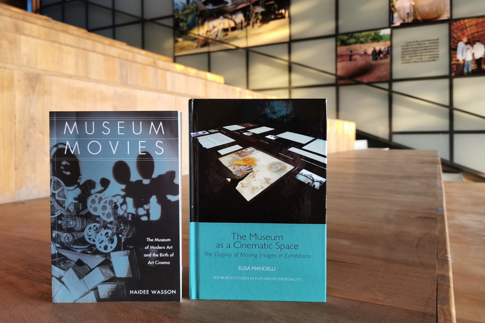 เรามารู้จักหนังสือเล่มแรก The Museum as a Cinematic Space: The Display of Moving Images in Exhibitions งานเขียนของ Elisa Mandelli ประกอบด้วยเนื้อหาที่ผ่านการศึกษาวิเคราะห์ทั้งในเชิงทฤษฎีและเชิงเทคนิค โดยบริบทของการศึกษาครั้งนี้ ผู้เขียนมีแนวคิดว่าพิพิธภัณฑ์เป็นสถานที่ที่เกี่ยวข้องกับภาพยนตร์ และให้ความสำคัญต่อการตั้งคำถามว่า ส่วนประกอบของอุปกรณ์กลไกภาพยนตร์เข้าไปอยู่หรือจัดแสดงในพิพิธภัณฑ์ได้อย่างไร อุปกรณ์เหล่านั้นมีอิทธิพลต่อการวางผังพื้นที่งานพิพิธภัณฑ์หรือไม่ รวมถึงกำหนดรูปแบบใหม่ของการสื่อสารและการส่งผ่านความรู้ ตลอดจนความสัมพันธ์กับผู้ชมอย่างไร เช่น วิเคราะห์การใช้อุปกรณ์ชมภาพเคลื่อนไหวด้วยเครื่องมิวโตสโคป (Mutoscopes) ที่ติดตั้งในห้องจัดแสดงของพิพิธภัณฑ์ Imperial War Museum ตั้งแต่ปี ค.ศ. 1924-1938