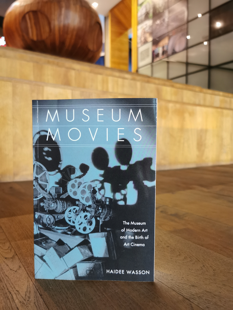 หนังสืออีกเล่มหนึ่งที่ห้องสมุดฯ อยากแนะนำให้อ่านกัน คือ Museum Movies: The Museum of Modern Art and the Birth of Art Cinema เขียนโดย Haidee Wasson หนังสือเล่มนี้มีวัตถุประสงค์หลัก คือการนำเสนอความเป็นมาในยุคแรกเริ่มและบทบาทของห้องสมุดภาพยนตร์ (Film Library) ประจำพิพิธภัณฑ์ศิลปะสมัยใหม่ (The Museum of Modern Art หรือ MoMA) แห่งนครนิวยอร์ก ผู้เขียนเริ่มต้นเนื้อเรื่องด้วยการอธิบายถึงจุดเปลี่ยนทัศนคติของชาวอเมริกันที่มีต่อภาพยนตร์ในช่วงทศวรรษ 1930 จากเดิมที่ภาพยนตร์เป็นเพียงสื่อเพื่อการค้าและความบันเทิง เปลี่ยนมาสู่บทบาทในฐานะสื่อสุนทรียศาสตร์ที่สะท้อนคุณค่าในเชิงประวัติศาสตร์ ศิลปะ และวัฒนธรรม จึงเป็นที่มาของการก่อตั้งห้องสมุดภาพยนตร์เมื่อ ค.ศ. 1935 ให้เป็นส่วนหนึ่งของพิพิธภัณฑ์ศิลปะสมัยใหม่ เพื่อรวบรวมและเก็บรักษาฟิล์มภาพยนตร์ ตลอดจนจัดแสดงภาพยนตร์ที่เสี่ยงต่อการสูญหายให้ประชาชนทั่วไปได้รับชม ซึ่งพิพิธภัณฑ์ศิลปะสมัยใหม่มีกิจกรรมและดำเนินงานทั้งบทบาทของพิพิธภัณฑ์ศิลปะ โรงภาพยนตร์ และห้องสมุดภาพยนตร์ ดังนั้นจึงมีการผสมผสานหลักการ แนวคิด และทฤษฎีทั้งในเชิงศิลปะหลากแขนง ตลอดจนการประยุกต์ใช้เทคโนโลยีอย่างเหมาะสม โดยระยะแรกห้องสมุดภาพยนตร์ได้เริ่มนำภาพยนตร์ฟิล์ม 16 มม. มาใช้เป็นส่วนหนึ่งในการจัดกิจกรรมการจัดนิทรรศการ ซึ่งการชมภาพยนตร์เน้นวัตถุประสงค์เพื่อการศึกษา