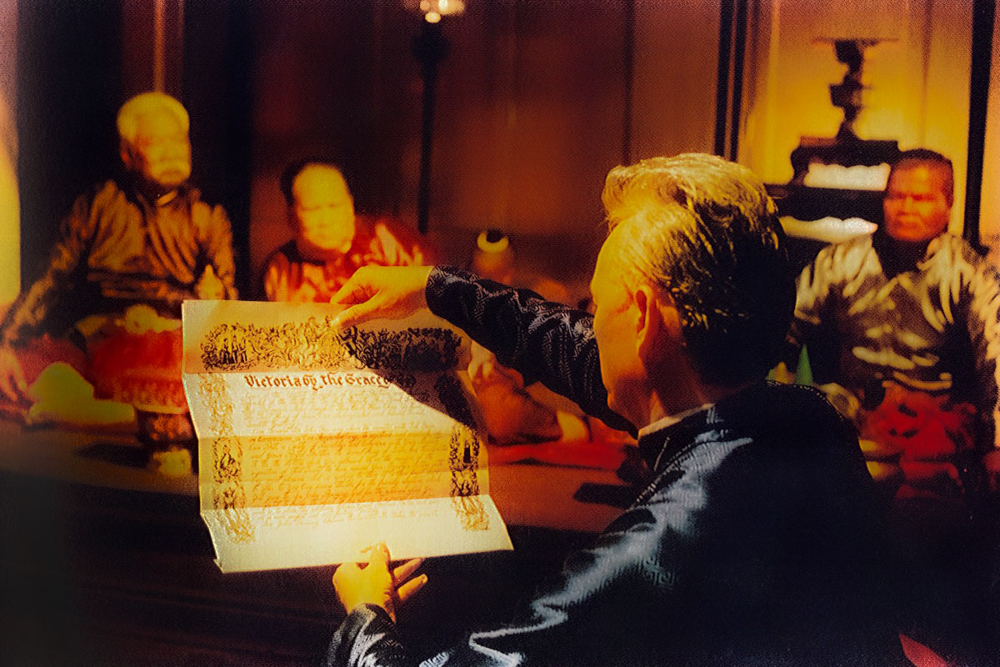 นี่คือช่วงเวลาประวัติศาสตร์ที่มณีจันทร์มองเห็นด้วยเพียงหางตา และอาจไม่ได้ครุ่นคิดกับมันมากนักเพราะเหตุการณ์เกิดขึ้นอย่างฉับไว ความสำคัญของฉากนี้อยู่ตรงที่ว่า หากมณีจันทร์ได้คิดตรึกตรองนัยสำคัญของการเสด็จครั้งนี้ ชุดคำอธิบายว่าด้วยพระปรีชาสามารถของพระมหากษัตริย์ที่เธอยึดถือมาตลอดจะถูกทุบทำลายลงทันที เพราะนี่ไม่ใช่เพียงการประนีประนอมกับตะวันตกที่ถูกอธิบายด้วยวาทกรรม ‘เสียส่วนน้อย เพื่อรักษาส่วนใหญ่’ แต่การที่คนระดับวังหน้านำพระโอรสมา ‘ฝากเนื้อฝากตัว’ กับตะวันตกนั้นแสดงให้เห็นถึงการสยบยอมในระดับที่ไม่อาจละเลยได้