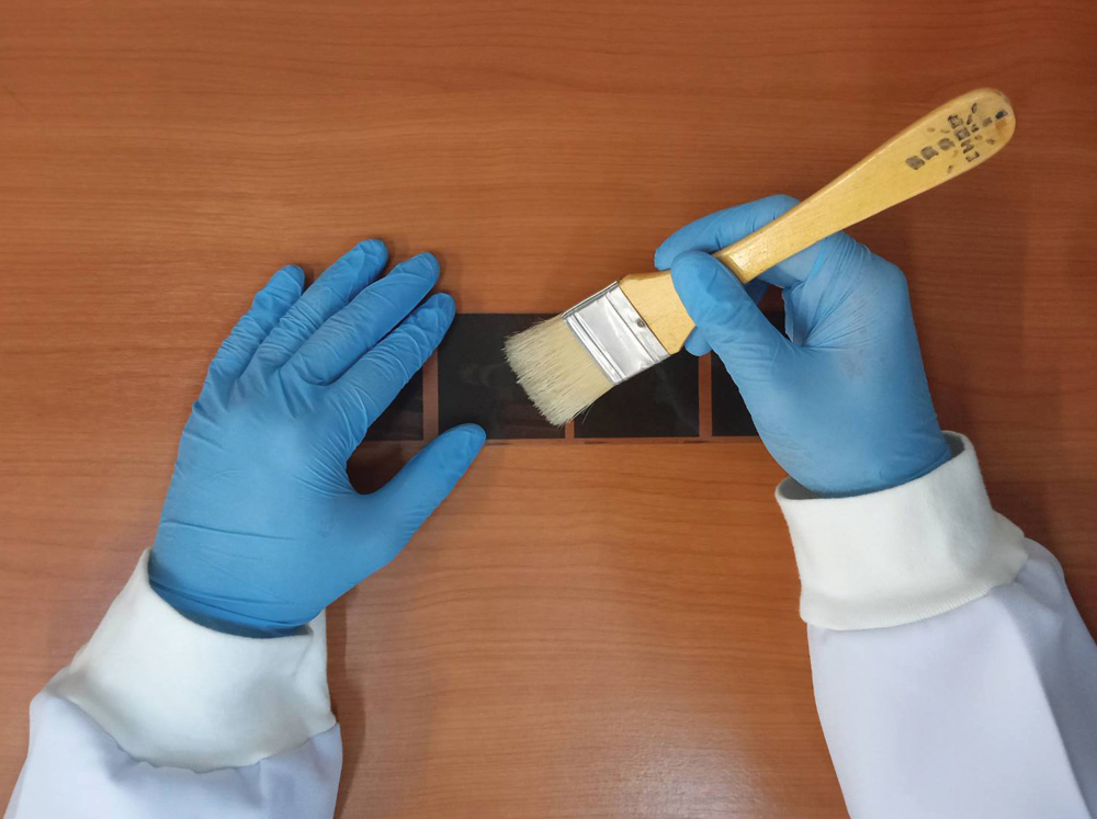 ภาพ: ใช้แปรงขนนุ่มเป่าฝุ่นออกจากฟิล์ภาพถ่าย