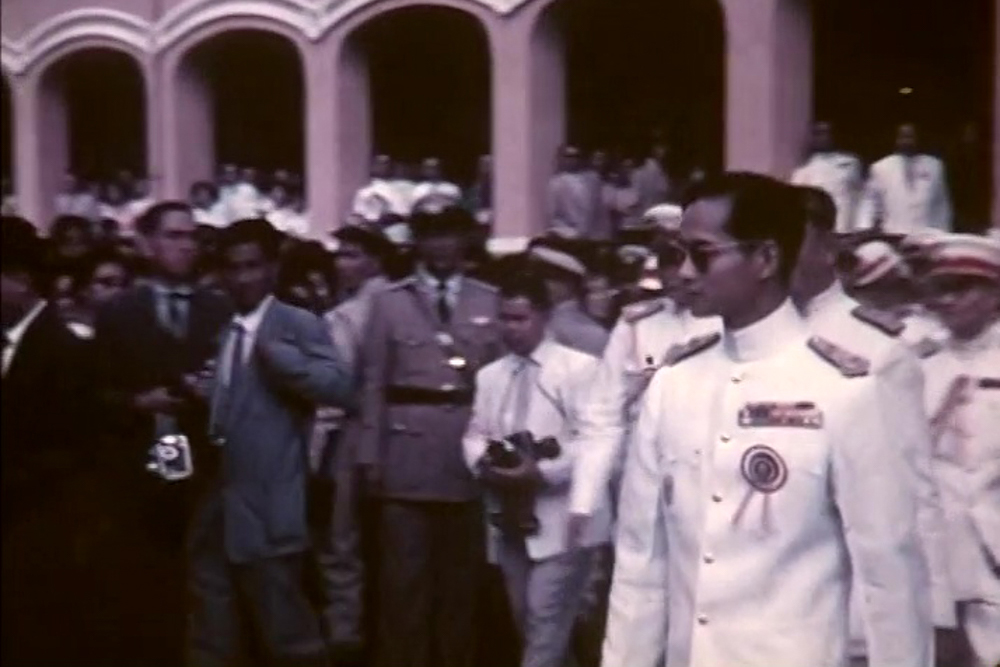ภาพ: พระบาทสมเด็จพระเจ้าอยู่หัวทอดพระเนตรกิจกรรมในงานศิลปหัตถกรรมนักเรียน ปี 2502