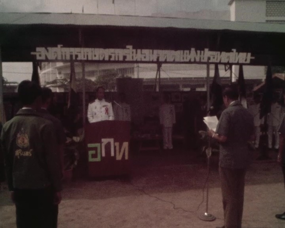 ภาพ: พิธีมอบธงประจำหน่วยขององค์กรเกษตรกรในอนาคตแห่งประเทศไทย ในงานศิลปหัตถกรรมนักเรียน ปี 2515