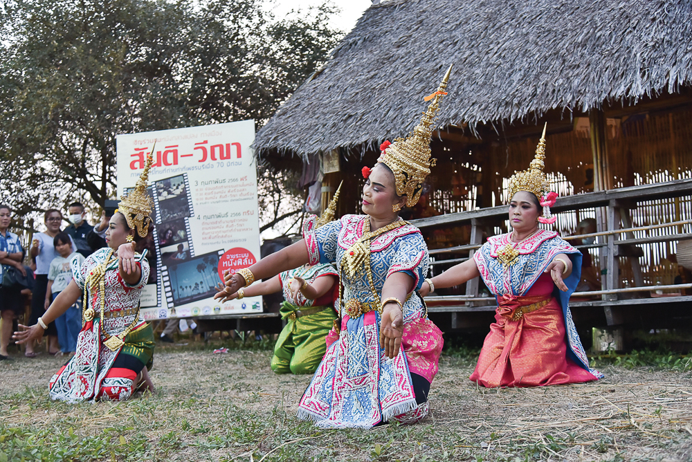 ภาพ: การแสดงรำละครชาตรี จำลองฉากในภาพยนตร์สันติ-วีณา ก่อนการจัดฉายภาพยนตร์ในฉบับกลางแปลง