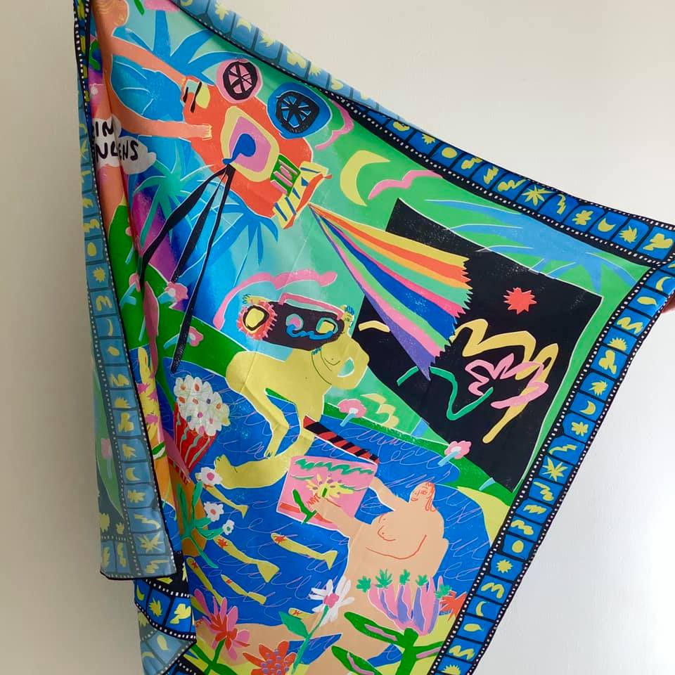 ผ้าพันคอ silk satin ขนาด100x100 ซม. ออกแบบโดย juli baker and summer *รายได้เข้ากองทุนสวัสดิการหอภาพยนตร์