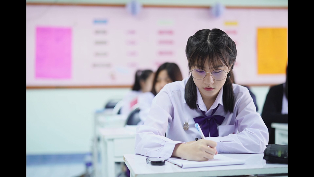 The school toilet wall is cover with scribbles. One day a nerdy girl Pailin wants to give it a go and writes one sentence onto it.