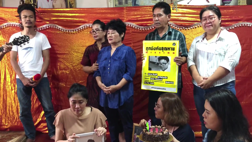 A footage of Siam Teerawutt's 36th anniversary party thrown by his family, even though he has gone missing since 2019 during hisexile after the military government had vowed to impose the Lèse-majesté law.