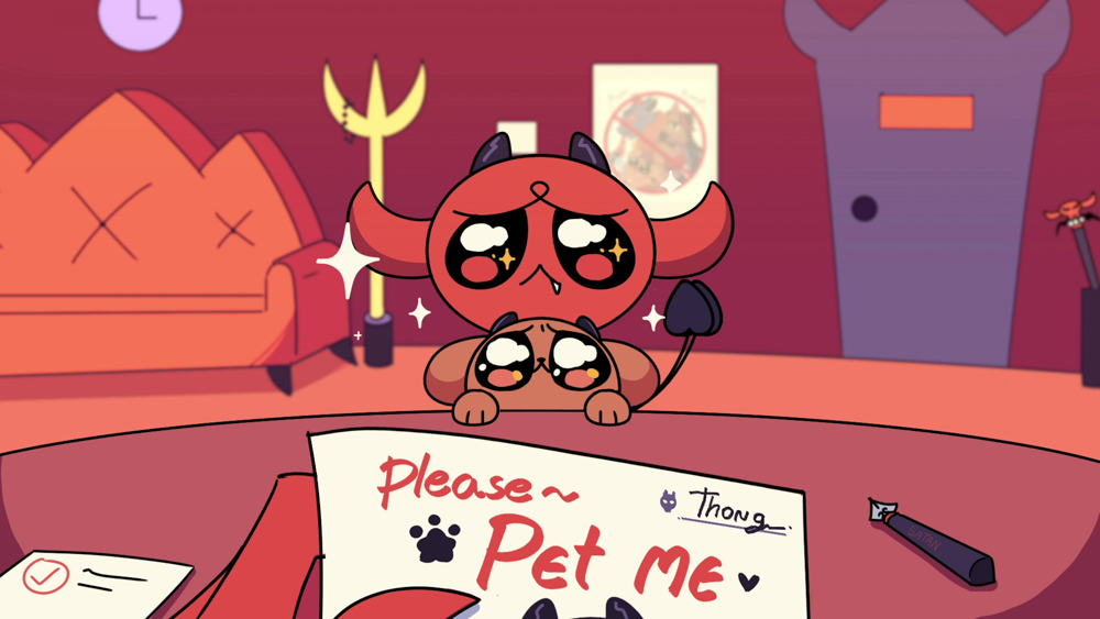 A little devil made an appeal to keep pet animals at work to satan. However, pets are not allowed in the company. Will the little devil find a way to get him a pet?