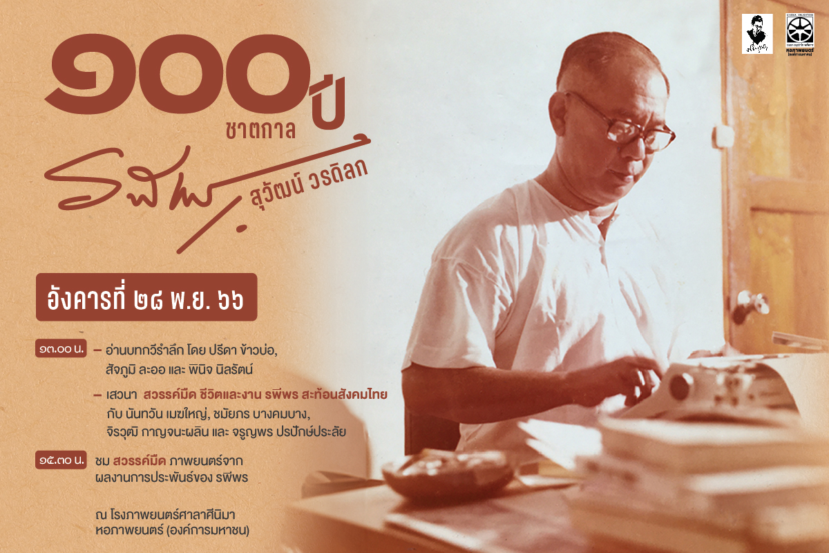 ศุกร์ที่ 5 กรกฎาคมนี้ ขอเชิญร่วม เสวนาภาพยนตร์ ความทันสมัยในวิถีพม่าสู่สังคมนิยม: ประวัติศาสตร์ด้านสังคมและการเปลี่ยนแปลงในอุตสาหกรรมภาพยนตร์พม่า โดย...
