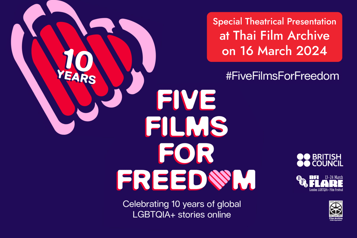 ร่วมชมหนังสั้นนานาชาติว่าด้วยความหลากหลายทางเพศ พร้อมรับฟังการเสวนาจากนักวิชาการและคนทำหนัง ในกิจกรรม Five Films For Freedom ส่วนหนึ่งของเทศกาลภาพยนตร...