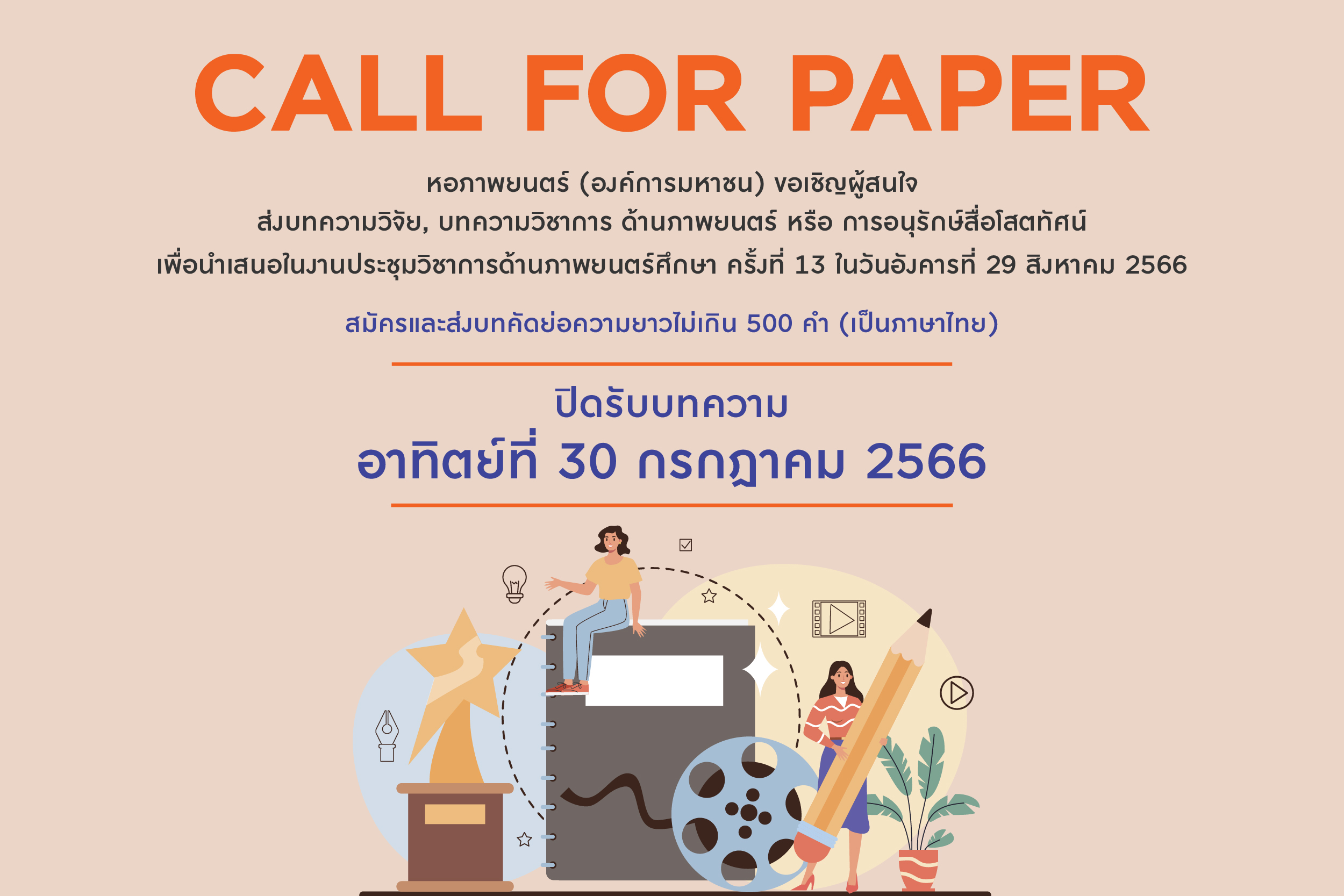 ขอเชิญผู้ที่สนใจส่งบทความวิจัย, บทความวิชาการด้านภาพยนตร์ หรือ การอนุรักษ์สื่อโสตทัศน์ เพื่อร่วมนำเสนองานศึกษาที่เกี่ยวข้องกับภาพยนตร์ไทยและภาพยนตร์อา...