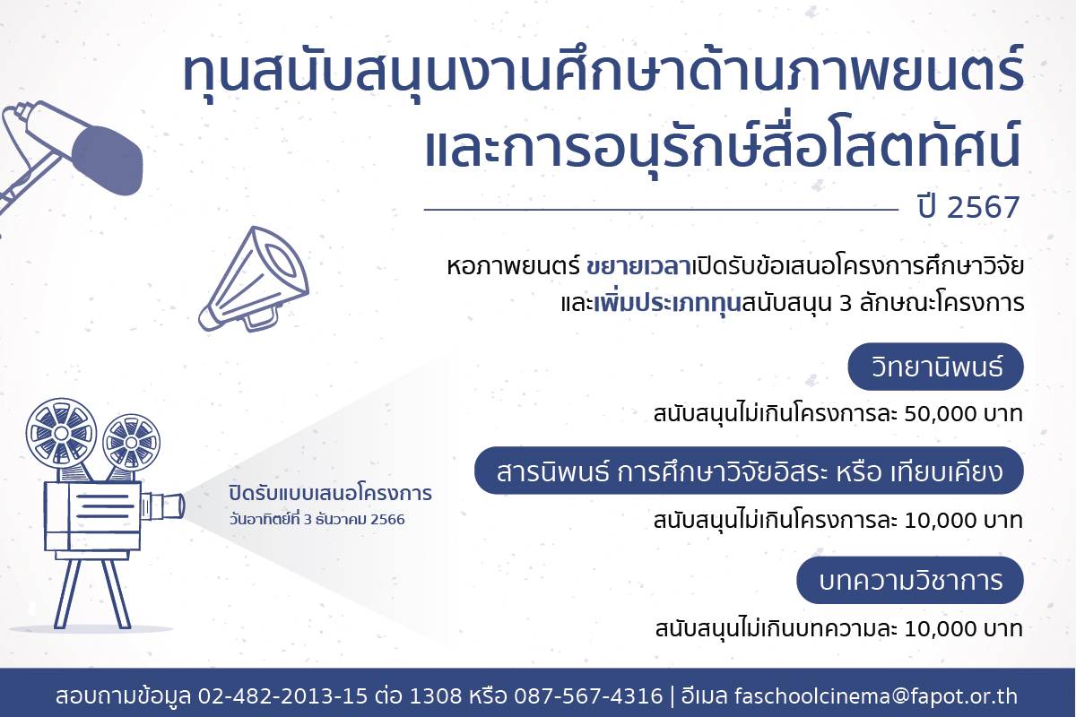 ทุนสนับสนุนงานศึกษาด้านภาพยนตร์และการอนุรักษ์สื่อโสตทัศน์ ปี 2569