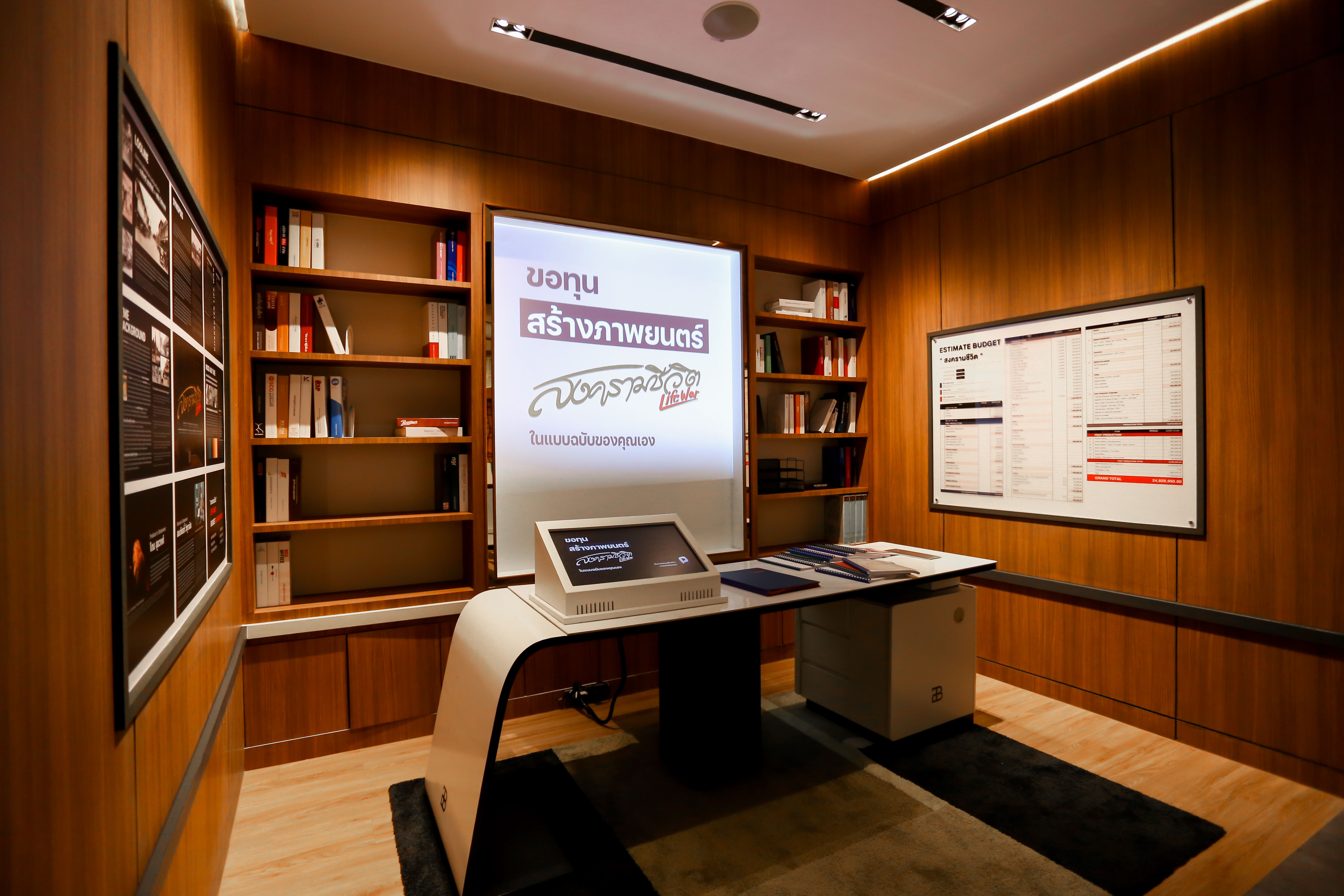 จัดแสดงให้เห็นถึงขั้นตอนในการขอทุนสำหรับการสร้างภาพยนตร์ ว่าผู้ขอทุนต้องเตรียมข้อมูลอะไรเพื่อนำไปเสนอขอทุน แสดงรายละเอียดงบประมาณสำหรับการสร้างภาพยนตร์ แสดงรายชื่อแหล่งทุนภาครัฐ แหล่งทุนภาคเอกชน แหล่งทุนต่างประเทศ รวมไปถึงรายชื่อบริษัทผู้สร้างภาพยนตร์ต่าง ๆ ของประเทศ ส่วนนี้ผู้ชมจะได้ทดลองยื่นข้อเสนอเพื่อขอทุนในการสร้างภาพยนตร์ในรูปแบบของตัวเอง